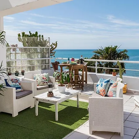 There are a balcony and a sitting area furnished with a sofa set and equipped with comforts like climate control. For added convenience, Atico En Faro Hotel features Wi-Fi and a multi-channel television, ensuring guests can unwind during their leisure hours. A bathroom includes a bath and a shower, as well as a hair dryer and towels.